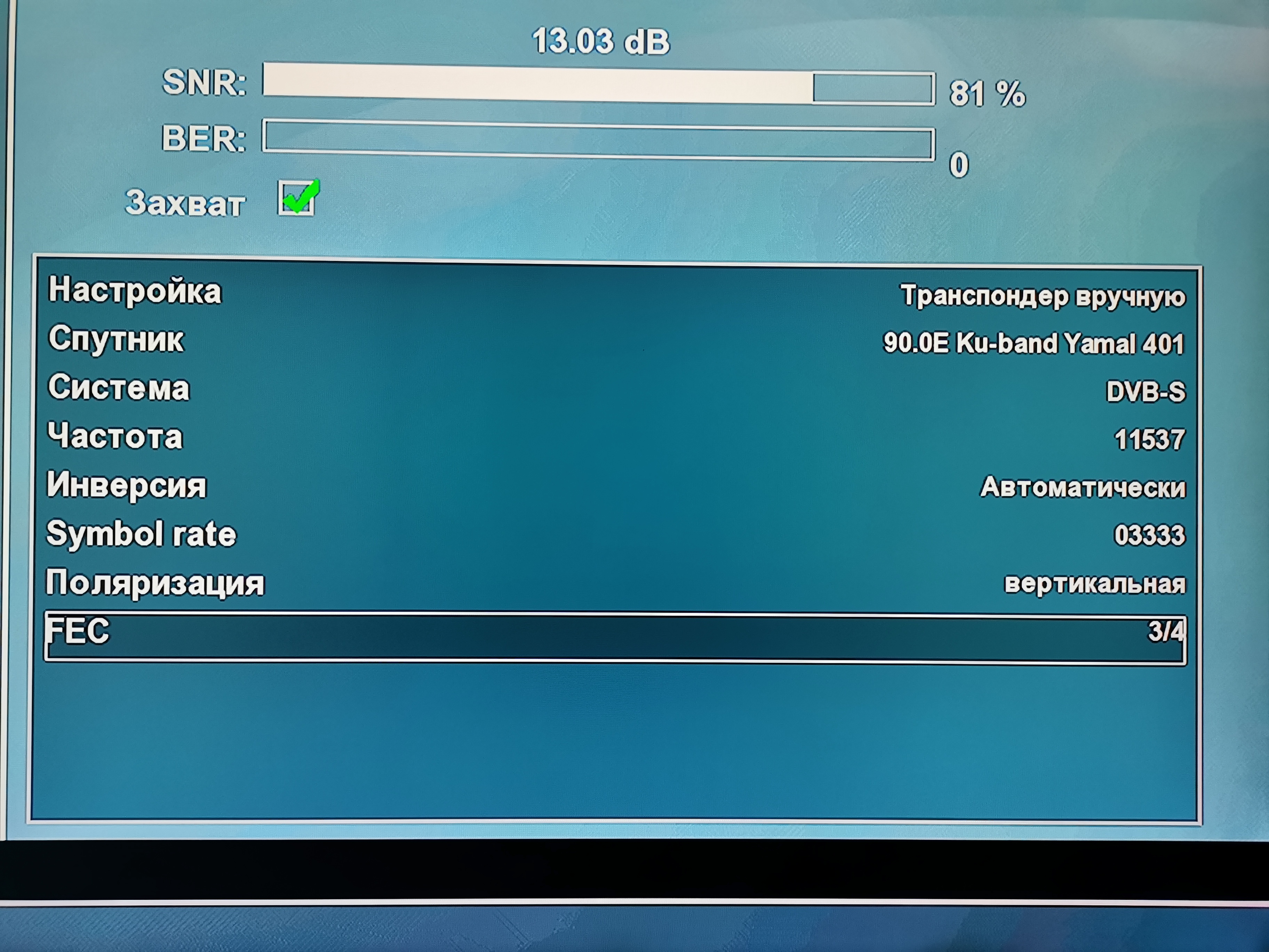 Сигнал/шум 13 дБ, качество сигнала 80%, это выше чем на частотах у региональных телеканалов.