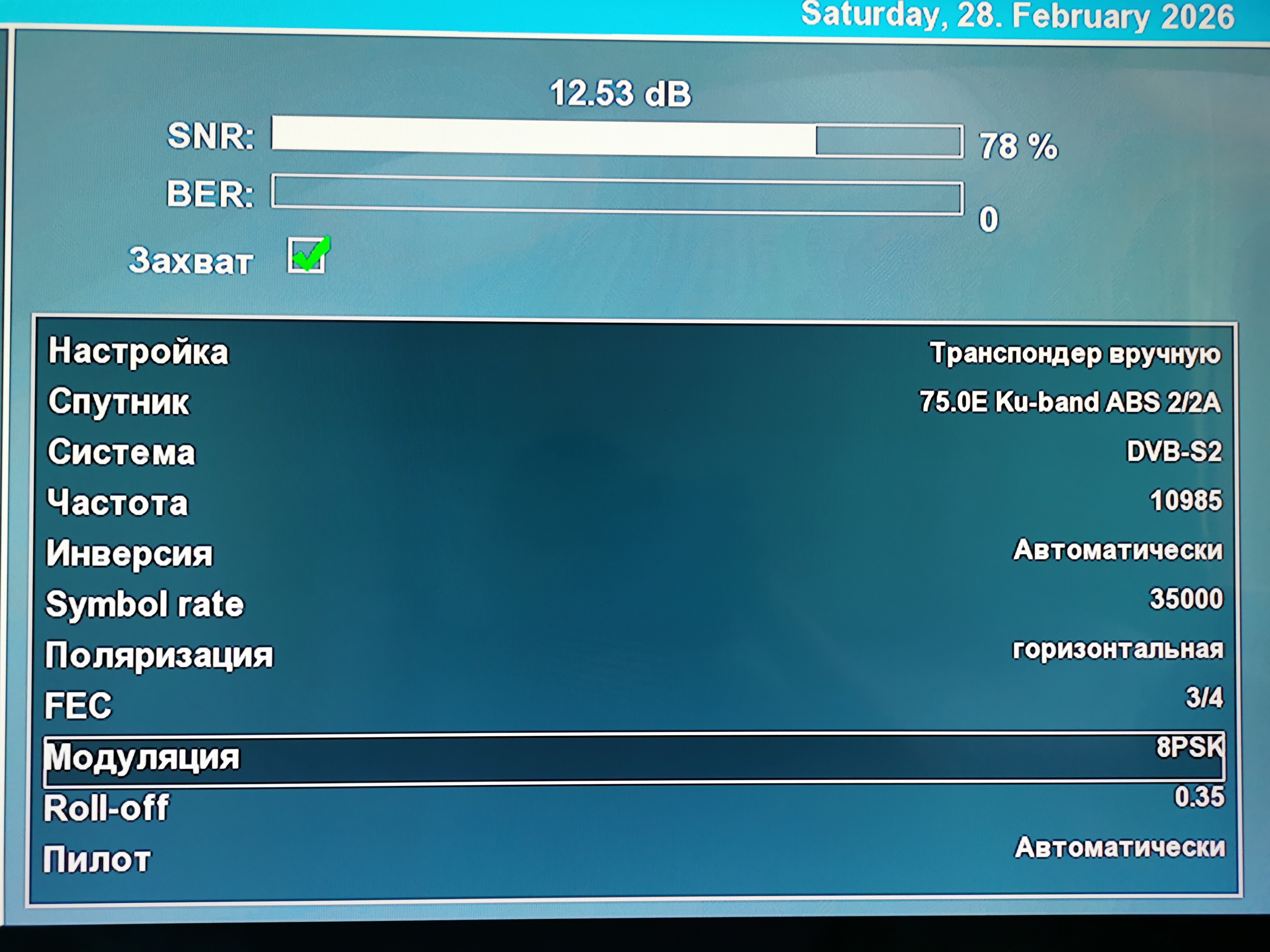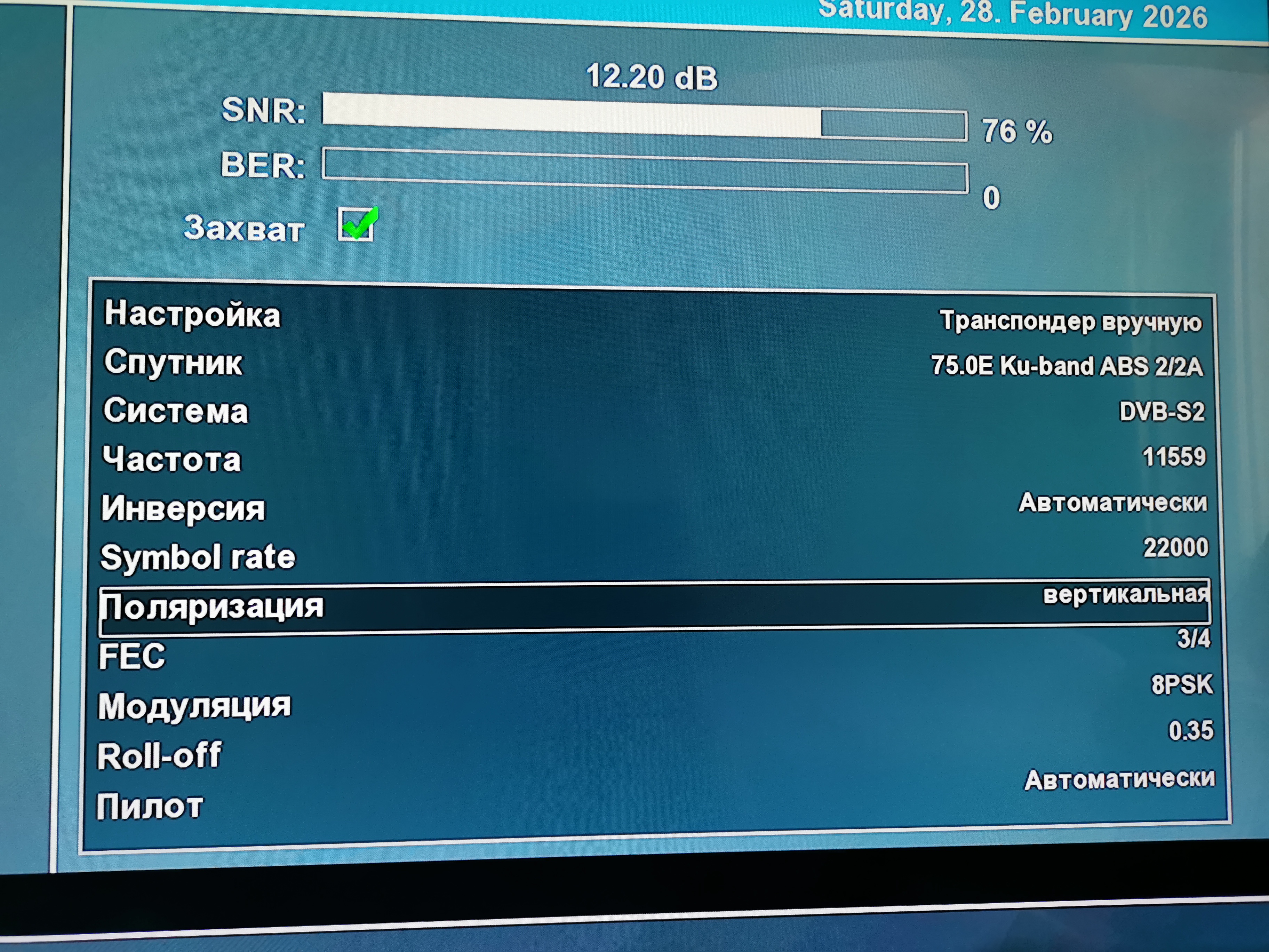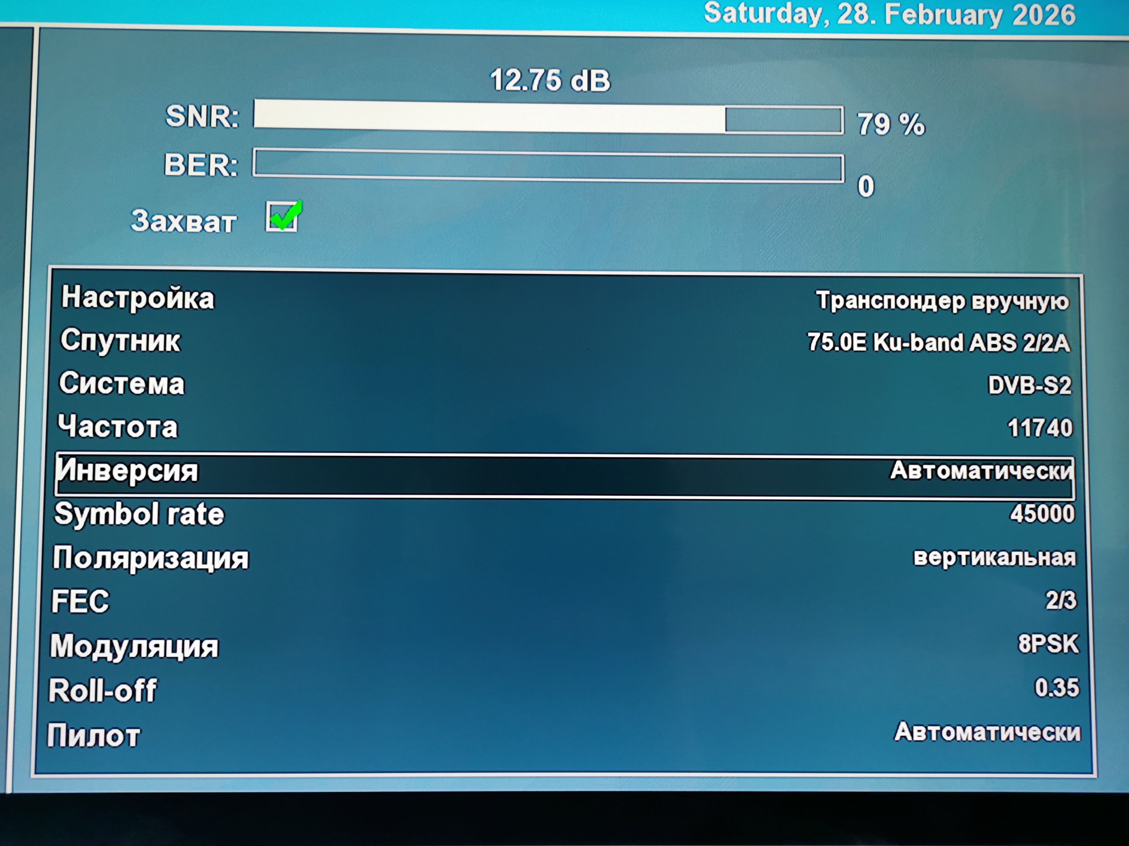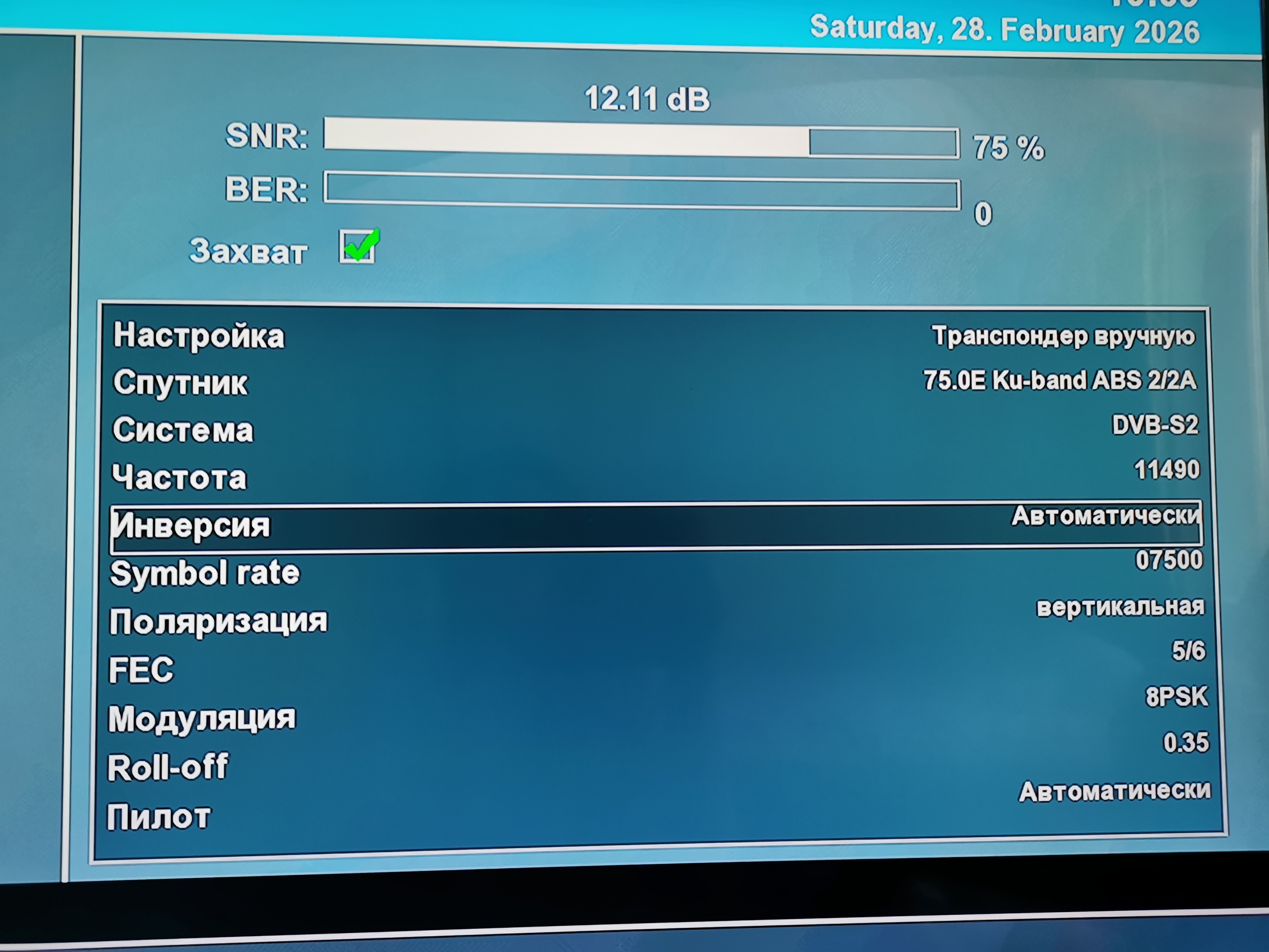 Прием спутника ABS-2A 75 East