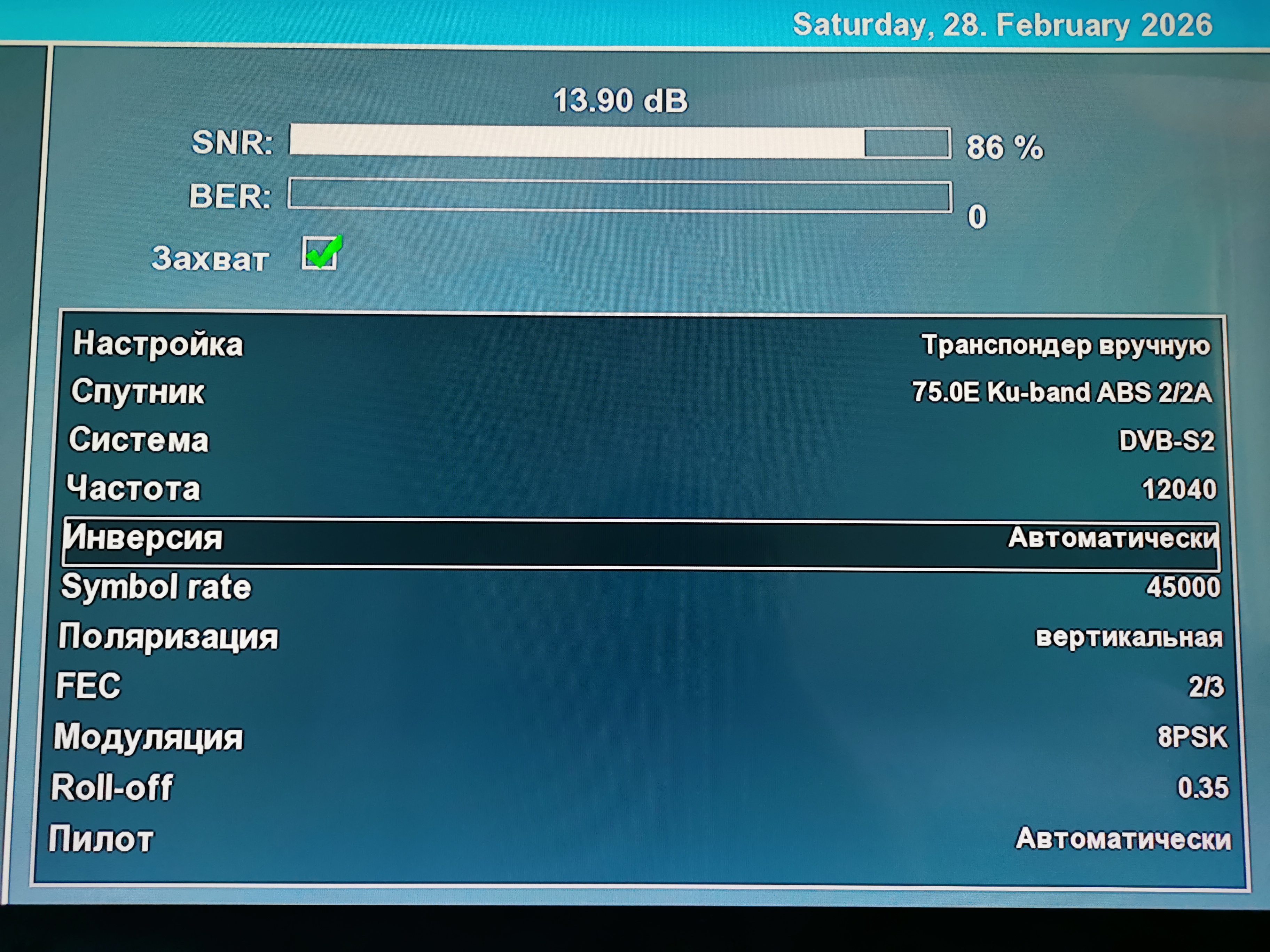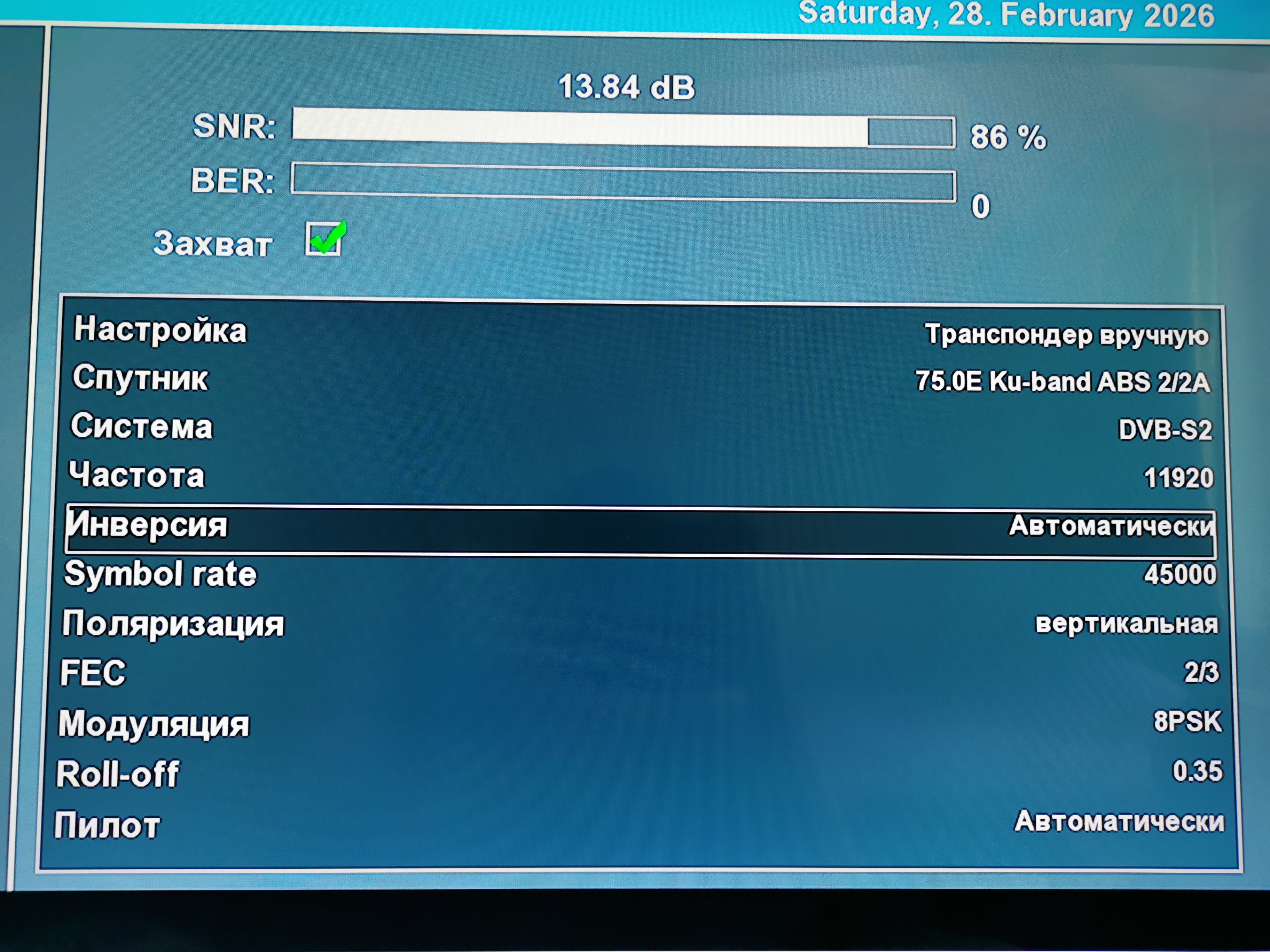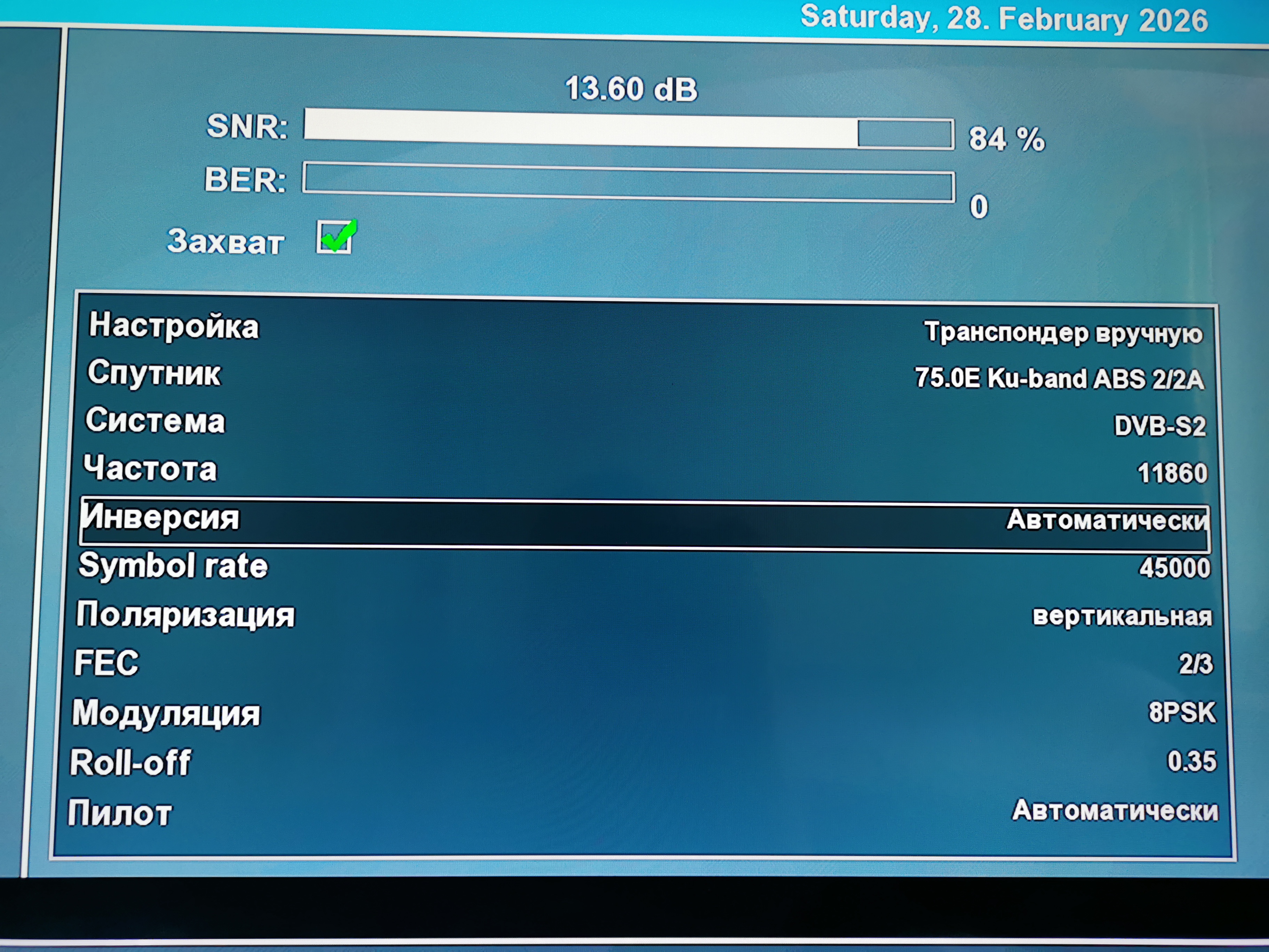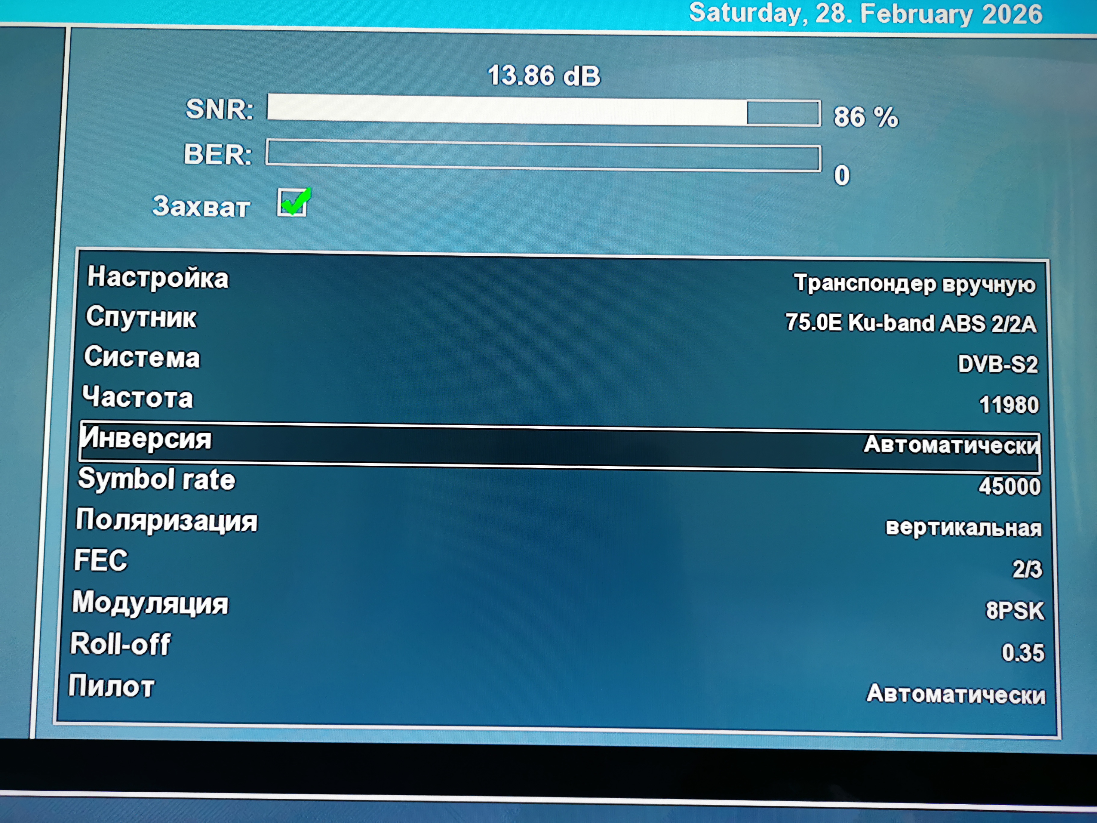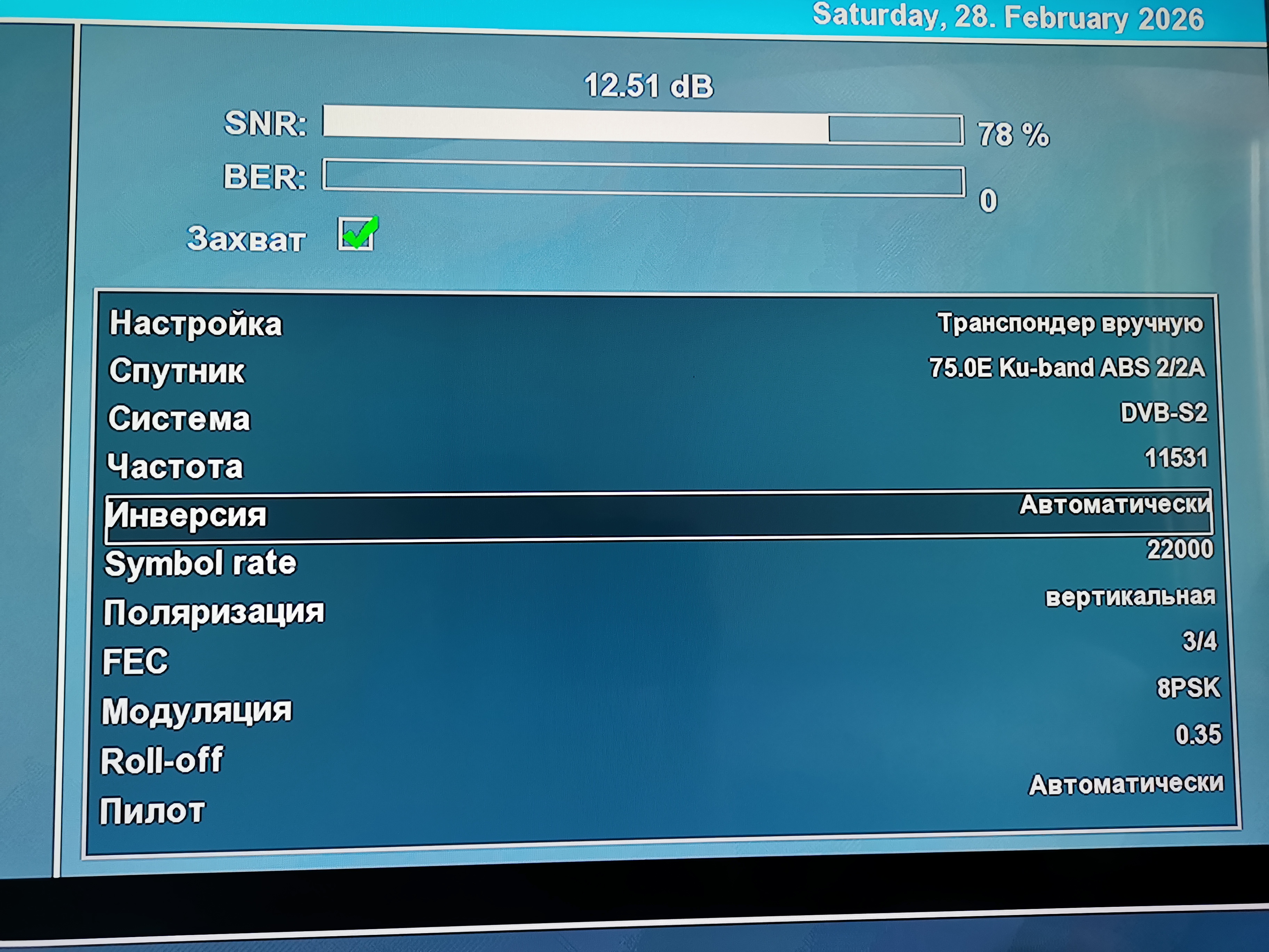 Прием спутника ABS-2A 75 East