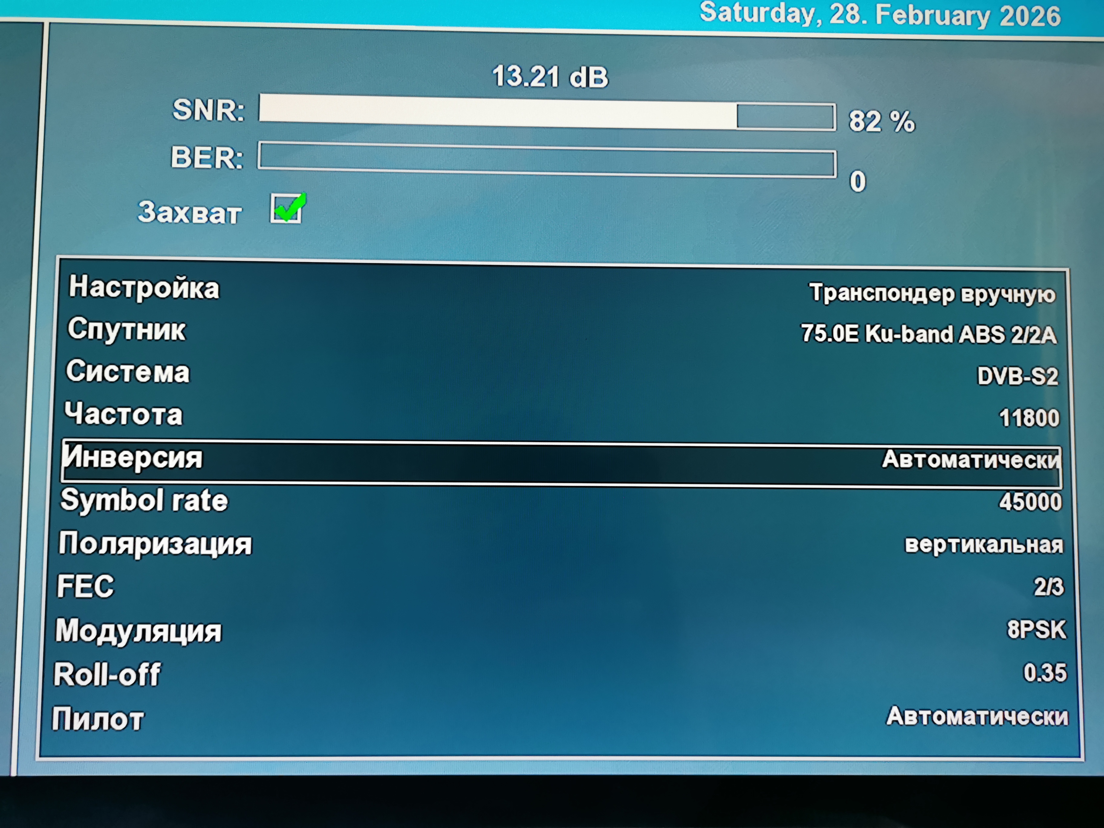 Параметры приема - SNR (Сигнал/шум) - Качество сигнала