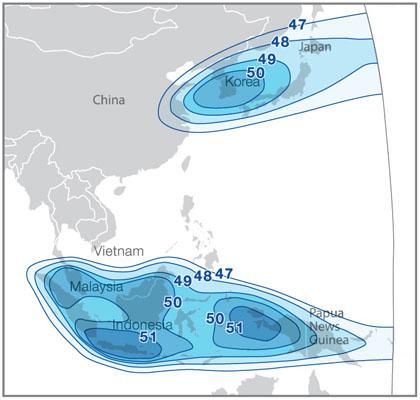 Покрытие: Северная, Южная Корея, Россия (Приморский край), Япония,