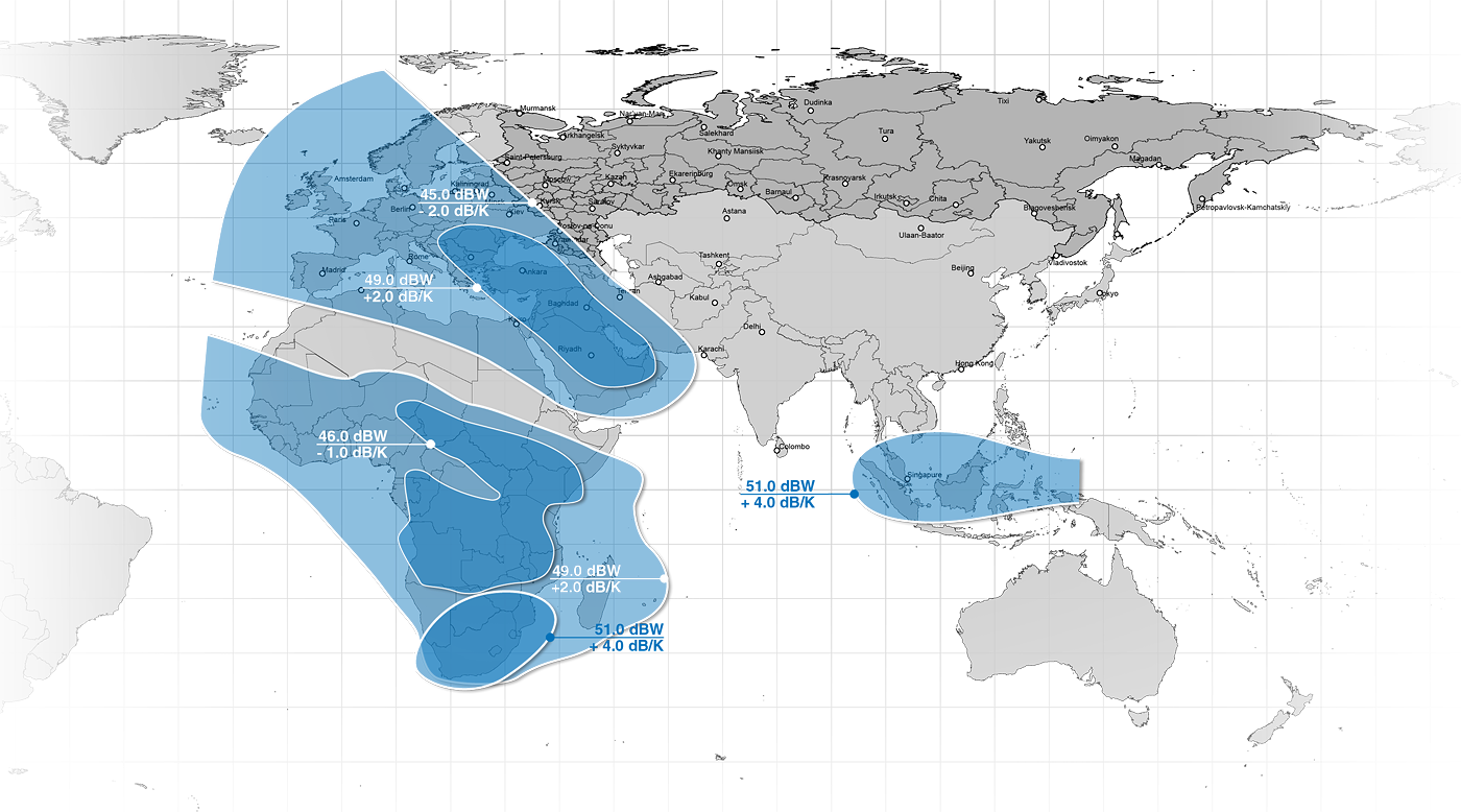 3. Ku диапазон - европейский, южный африканский и перенацеливаемый лучи